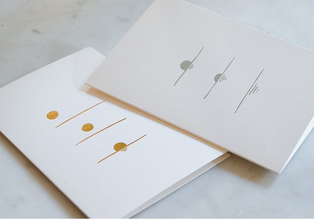 Cartes de voeux levé et couché de soleil, inspirées par les journées et soirées méditerranéennes. Vendues avec une enveloppe embossée 100% coton.